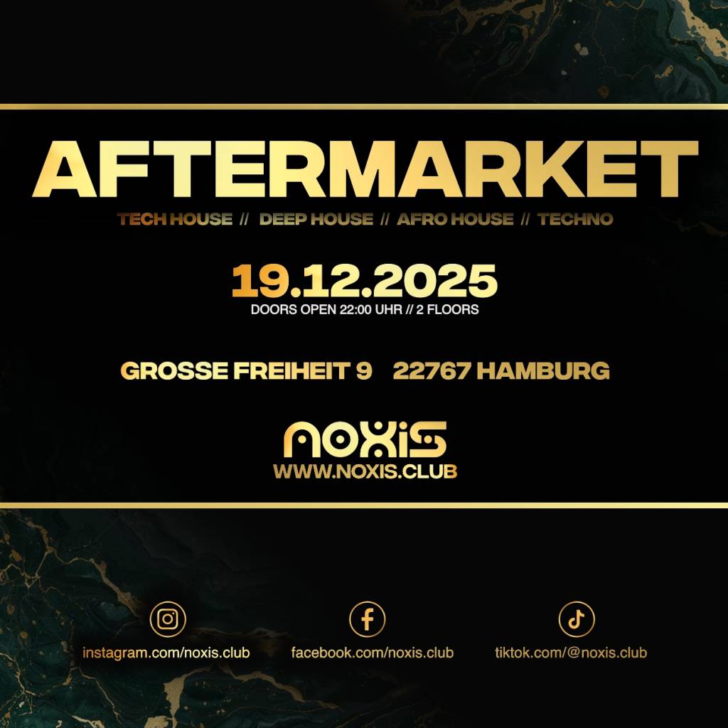 The Night After Never Ends. Wenn die letzten Glühweinstände schließen, erwacht Noxis zum Leben. Aftermarkt ist der Treffpunkt für alle, die nach dem Weihnachtsmarkt noch nicht genug haben – warm ums Herz, aber bereit für den Beat.